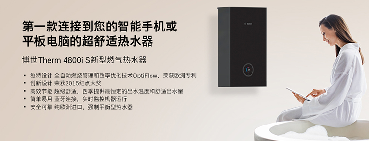 與傳統熱水器相比,更加舒適、節能、環保。這些都歸功于智能伺服水閥和電動旁通水閥,它們讓熱水器快速達到設定溫度的同時,提高了溫度的穩定性,從而確保淋浴時溫度不再發生突然變化。秉承博世低炭綠色理念,Therm 4800i S熱水器可與太陽能供熱水系統兼容,將節能進行到底。