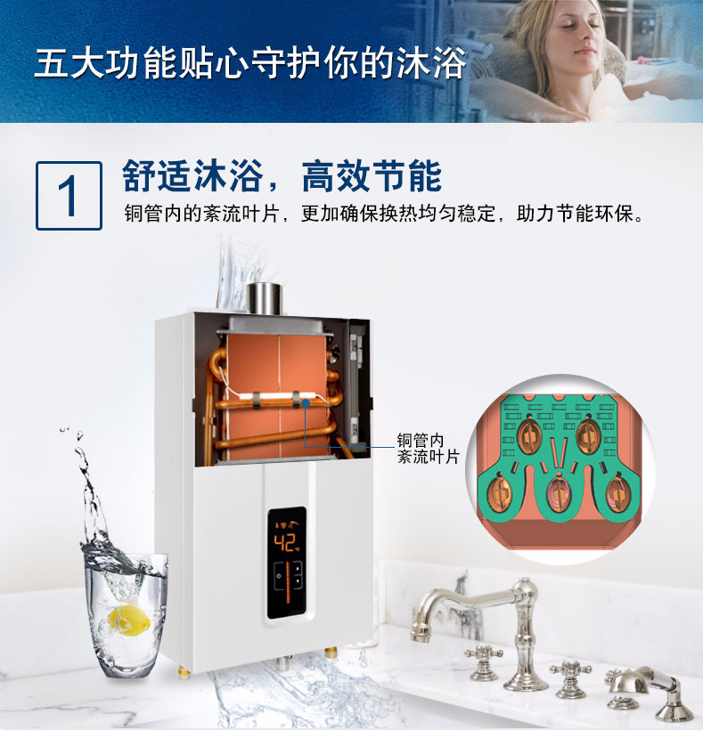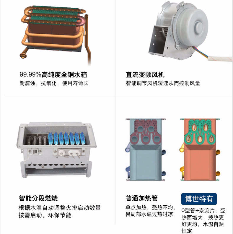 純銅水箱 直流變頻風機 智能分段燃燒 O型加熱管