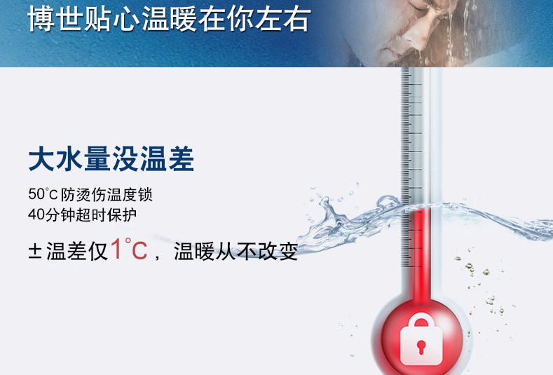 智能恒溫控制系統,記憶合金先進技術,安全探測報警系統,提供舒適安全沐浴。