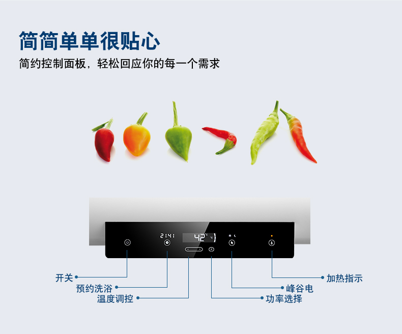 電子式控制,觸摸按鍵。可選容積為50L/60L/80L。