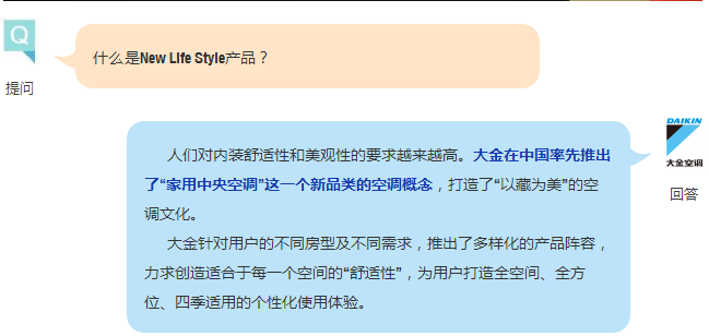 大金中國關注消費者的切身感受,堅守“以人為本”的研發,顛覆傳統,打造了更適合當代消費者需求的新居創想,在業界第一個推出全校家用中央空調,并提出“New Life Style”的新理念。為讓更多零售住宅用戶得到專業化服務,大金建立了家用中央空調的專業店“PROSHOP”的新概念。
